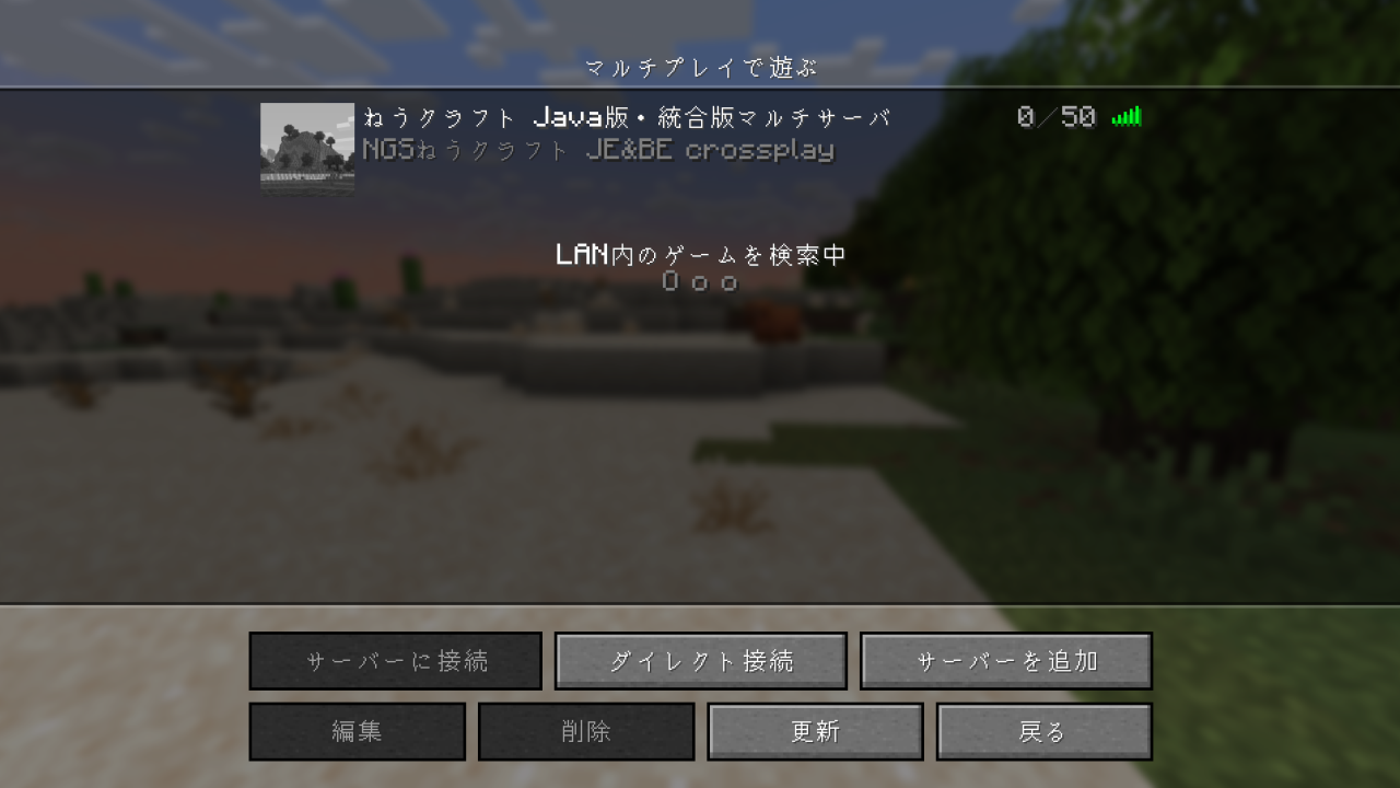 ※Nintendo Switch版(統合版)でも参加できますが、読み込みにかなり時間がかかることとネットワーク設定を特殊なものに変更しないと接続できません。こちらの外部サイトを参考に設定変更が必要です。