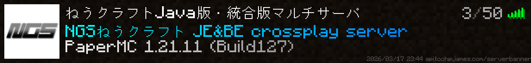 正式名称はNGSねうクラフトで登録していますが「ねうクラ」「ねう鯖」「NGS鯖」など自由に呼んでください。